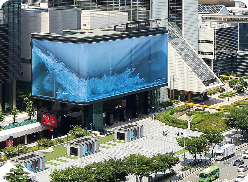 코엑스 3D 전광판 작품 속에서 헌트릭스의 ‘골든(Golden)’ 뮤직비디오가 상영된 스크린은 코엑스 초대형 3D 스크린과 똑같이 구현돼 큰 화제를 모았다.