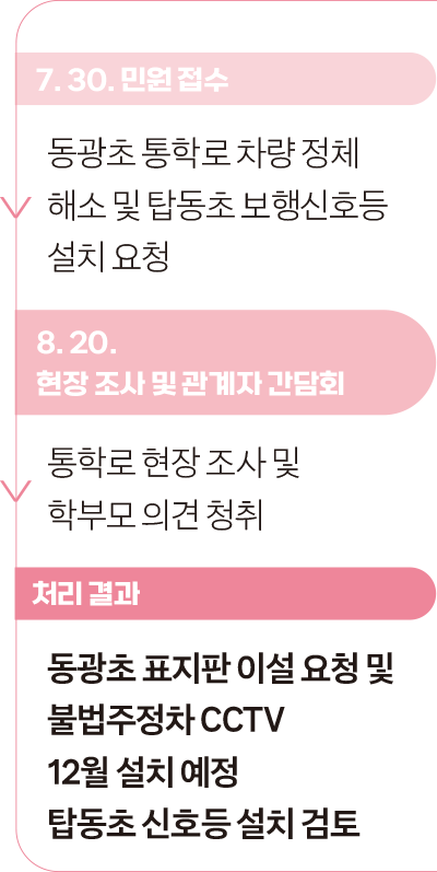 “동광초 통학로 차량 정체 해소 및 탑동초 인근
