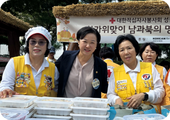 화합·소통 의미 되새겨이민옥 의원은 9월 29일 성동구청 앞마당에서 개최된 ‘대한적십자사봉사회 성동구협의회와 함께하는 한가위맞이 남과 북의 명절음식 나눔 한마당’ 행사에 참석했다. 이 의원은 “남북의 전통 명절 음식을 통해 화합과 소통의 의미를 되새기는 소중한 시간이 될 것”이라고 말했다.