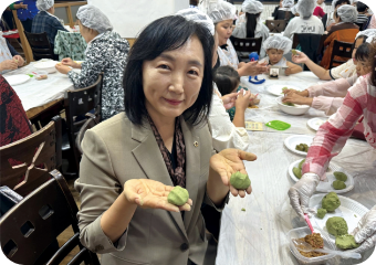 따뜻한 마음으로 한가위 맞이이영실 의원은 9월 20일 중랑구 바르게살기운동협의회가 주관한 다문화가족 송편 만들기 체험 행사에 참석했다. 다문화가족들과 함께 송편을 빚은 이 의원은 “다문화가족은 우리 지역사회의 소중한 이웃”이라며 “따뜻한 마음이 가득한 풍성한 한가위를 보내시길 바란다”고 전했다.