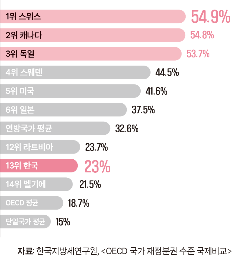 OECD 국가의 지방세 비중(2022년 기준)