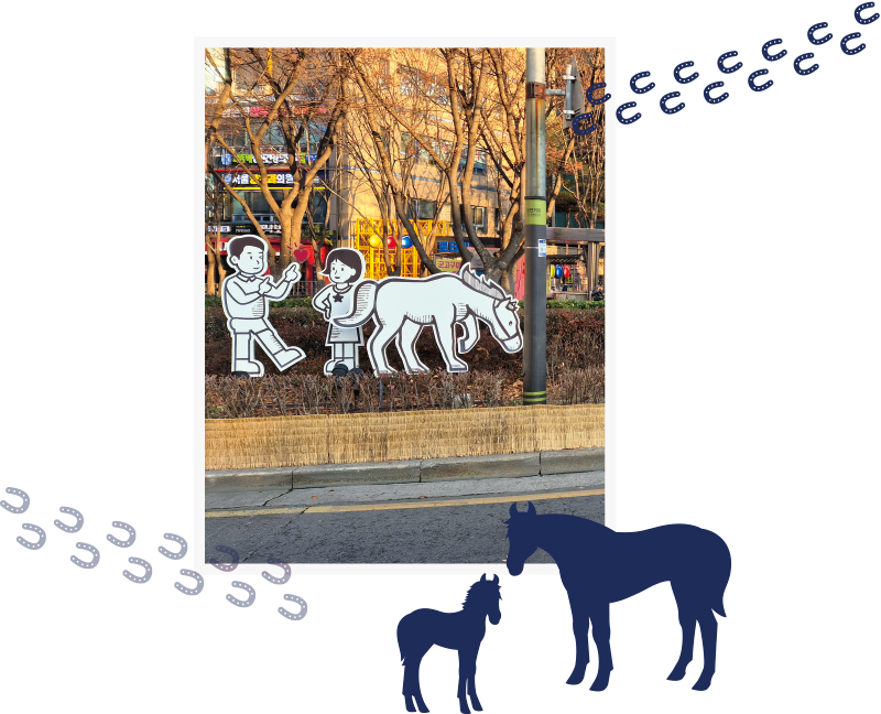 성동구 마장동 & 동대문구 장안평 & 중랑구 면목동마장동 하면 소가 제일 먼저 떠오르지만, 이곳도 말과 관계가 깊다. 조선 초기, 마장동은 지형이 평탄하고 연못과 실개천이 많아 물과 풀을 구하기 좋은 천혜의 목장지였다. 말을 기르던 목마장이 이곳에 있어 마장안 또는 한자명으로 마장내, 마장리라 한 것이 지금의 마장동이 됐다. 목마장의 흔적은 다른 곳에도 남아 있다. 조선 시대에는 목마장 안에 있어서 ‘목장 안쪽의 벌판’이라는 뜻의 마장안벌로 불렸다가 장안벌이 됐고, 이를 한자명으로 표기한 데서 장안동이 됐다. 또 면목동은 목마장의 문이 이곳에 있어서 목장을 앞에 두었다는 의미에서 유래됐다.