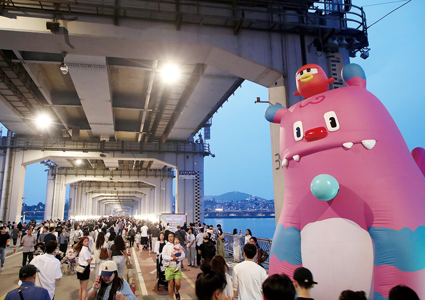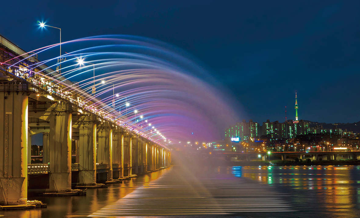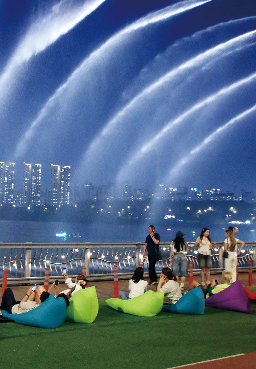 유유히 흐르는 한강에 역동적 이미지를 담고자 2009년 4월에 탄생한 교량 분수. 넓은 강폭 전체를 연출하기 위해 반포대교 구간에 낙하용 수중펌프를 이용해 음악에 맞춰 물을 분사한다. 단순히 물만 내뿜는 것이 아니라 배경음악과 분수 연출이 조화를 이뤄 보는 즐거움을 선사한다. 밤에는 200개 조명이 더해져 색색의 빛으로 환상적인 한강 야경을 연출한다. 이런 극적인 연출 덕분에 연주회나 무용 발표회 등이 열리는 문화 공간으로 주목받고 있다. 한강 교량이 문화 명소가 될 수 있는 가능성을 보여줌에 따라 서울시의회는 한강 다리를 서울의 글로벌 문화 무대로 거듭나게 할 조례를 준비 중이다. 미디어 파사드*, 빔 프로젝터 공연 등 첨단기술을 접목한 프로그램과 수상 영화제, 다리 미디어 쇼 등 시민 참여형 콘텐츠를 지원하는 방안을 담는다. 서울의 야경을 세계적 관광 브랜드로 강화하고, 나아가 K-팝과 연계해 새로운 한강 문화·관광 벨트를 조성할 것으로 기대된다. *건물 외벽을 스크린으로 활용해 다양한 영상을 투사하는 기법