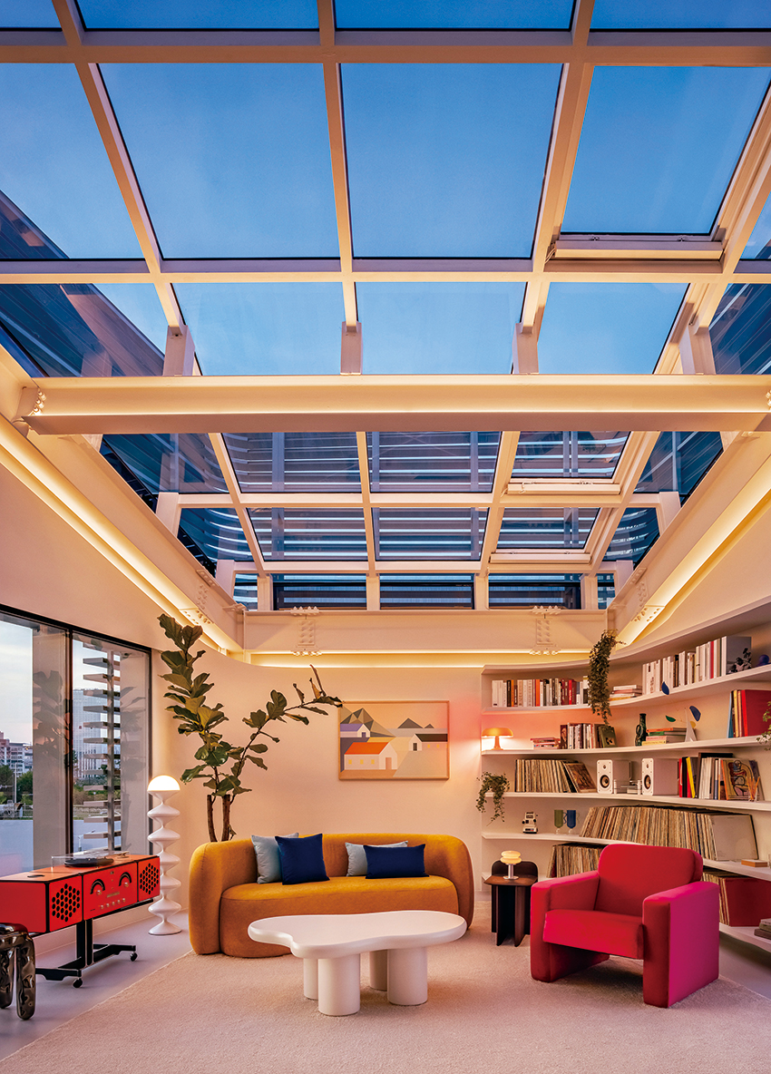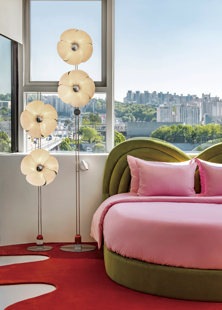 지난해 7월 한강대교 상부에 국내 최초의 교량 위 숙소인 ‘스카이 스위트 한강브릿지 서울’(이하 스카이 스위트)이 정식으로 문을 열었다. 기존에 운영되던 북단 전망 카페를 숙소로 리모델링했다. 외관은 차분하고 간결한 느낌이지만, 내부는 다채로운 색감으로 채워 색다른 매력을 선사한다. 총 144.13㎡(약 44평) 규모로 침실, 거실, 욕실, 간이 주방으로 구성된 독채형 구조이며, 최대 4명까지 이용이 가능하다.