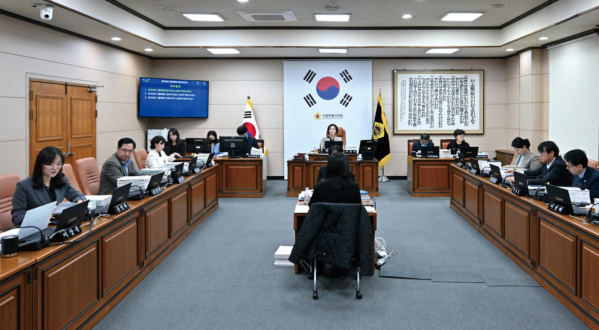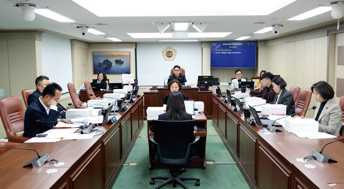 행정자치위원회(위원장 장태용)는 11월 4일부터 17일까지 집행기관을 대상으로 2025년도 행정사무감사를 실시했다. 행정국 감사에서는 북한이탈주민을 지역사회 구성원으로 포용하기 위한 정책 패러다임 전환의 필요성을 강조했고, 주민자치회의 내실 있는 운영 모델 마련을 주문했다. 재무국에는 모범납세자에 대한 실질적 인센티브 확대 방안을 요구했고, 특히 차기 시금고 선정과 관련해 위원들의 자료 제출 요구와 질의가 집중됐다. 평생교육국 감사에서는 학교보안관 역량 관리 체계와 현장 대응력 강화를 촉구했고, 서울런 사업부서에는 지속 가능한 운영 방안을 마련하도록 당부했다. 또한 비상기획관에는 서울안전통합센터 용역관리업체에 대한 철저한 관리·감독을 요구하고, 민생사법경찰국에는 청소년 대상 불법 대리 입금 범죄에 대한 상시 모니터링 및 예방 홍보 강화를 강조했다. 서울특별시 자원봉사센터에는 1만 시간 기준의 우수 자원봉사자에 대한 미흡한 혜택 개선을 요청했다. 감사 마지막날인 17일, 행정국·재무국·평생교육국을 대상으로 종합 행정사무감사를 실시해 그간의 기관별 감사 과정에서 제기된 현안을 재점검하고 미비점에 대한 집행기관의 명확한 소명과 실효성 있는 제도개선 대책 마련을 강력히 요구했다.