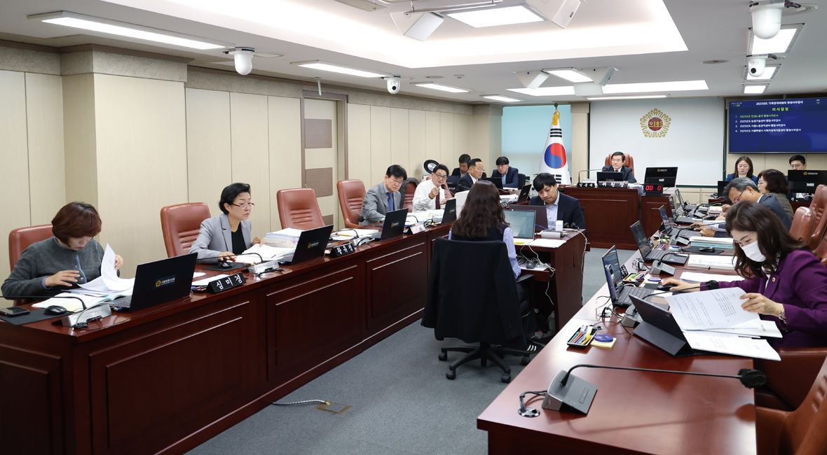 환경수자원위원회(위원장 임만균)는 11월 3일부터 17일까지 기후환경본부 등 5개 소관 기관에 대한 행정사무감사를 시행했다. 기후환경본부 행정사무감사에서는 데이터 기반 건물 온실가스 총량제의 체계적 추진, 저공해 운행 지역 운행 제한 제도 이행 준비 철저 등에 대한 다양한 지적 및 대안을 제시했다. 정원도시국 행정사무감사에서는 공원조성 계획·변경 실태 점검 및 관리, 수의계약 행정처리 불투명성 개선, 가로수 심의 불이행 사례 근절 등에 대한 문제를 지적하면서 실효성 있는 대책 마련을 주문했다.