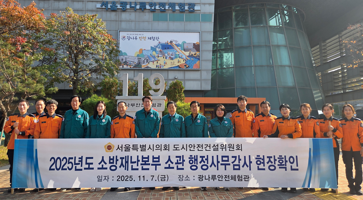 도시안전건설위원회(위원장 강동길)는 11월 4일부터 14일까지 재난안전실 등 6개 소관 실·국·본부 등에 대한 2025년도 행정사무감사를 실시했다. 재난안전실 행정사무감사에서는 안전한 보행 환경 구축을 통한 시민 안전 확보와 시민 편의 증진, 재난 예방 및 발생 시 주관 실국인 재난안전실의 역할을 강조했으며 시민 안전과 관련된 정책과 사업에 대한 보완도 지시했다. 소방재난본부 행정사무감사에서는 소방공무원의 현장 대응 역량 강화를 위해 근로환경 개선을 강조했으며, 안전한 예방 환경을 조성하기 위해 소방 인프라 확충과 제도 개선을 당부했다. 물순환안전국과 서울물재생시설공단 행정사무감사에서는 깨끗한 물환경 청정 도시를 만들기 위해 청계천에서 검출된 석면 조사 등 각종 현안을 지적하며 개선을 요청했다. 또한 물재생센터 설비의 과도한 내구연한 등 제도적 허점을 짚으며 풍수해로부터 안전한 도시를 만들어달라고 촉구했다. 건설기술정책관 행정사무감사에서는 건설 안심 도시 구축 및 ‘부실공사 제로(zero)’를 달성하기 위한 각종 개선을 주문했다. 도시기반시설본부 시설국 행정사무감사에서는 지속 가능한 인프라 확충을 통한 동행서울조성과 철저한 현장관리로 안전한 건설 환경을 구현할 것을 요청했다.