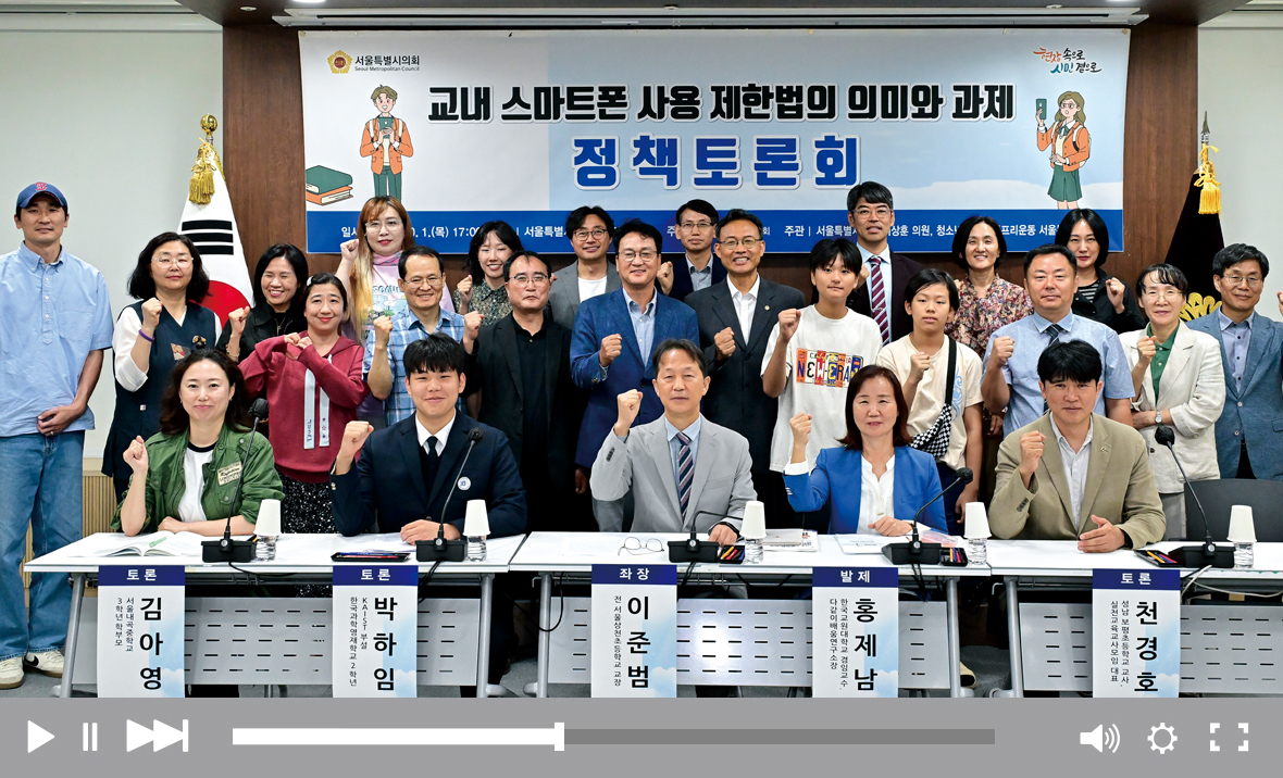 이상훈 의원(강북2·더불어민주당)은 10월 1일 ‘교내 스마트폰 사용 제한법의 의미와 과제 정책토론회’를 개최했다. 이번 토론회는 내년 3월 초중고 수업 중 스마트기기 사용을 제한하는 『초·중등교육법』 시행을 앞두고 교육 현장의 과제를 점검하는 자리였다. 이 의원은 “디지털 감옥에 갇힌 아이들을 오랜 시간 방치하지 않았는지 돌아보고 해결 방안을 찾아가는 시간”이라고 전했다. 홍제남 다같이배움연구소장은 “개정된 법이 시행되면 교사와 학생의 마찰이 빚어질 것으로 예상된다”고 짚었다. 박하임 한국과학영재학교 학생은 “학생들이 디지털 미디어의 위험성을 이해하고 올바르게 활용하는 역량을 기르도록 돕는 정책이 효과적”이라고 제언했다. 김현수 명지병원 정신건강의학과 교수는 “스마트폰 중독을 유발하는 알고리즘으로 막대한 이윤을 창출하는 기업의 사회적 책임 문제로 접근해야 한다”고 강조했다.
