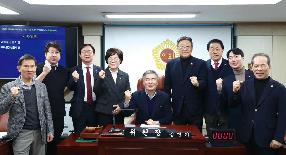 서울시의회 2027서울세계청년대회(WYD) 지원 특별위원회(위원장 김현기, 이하 특별위원회)는 12월 31일 제1차 회의를 개최하고 위원장에 김현기 의원(강남3·전반기 의장·국민의힘)을, 부위원장에 문성호 의원(서대문2·국민의힘)을 선임하며 공식 출범을 알렸다.