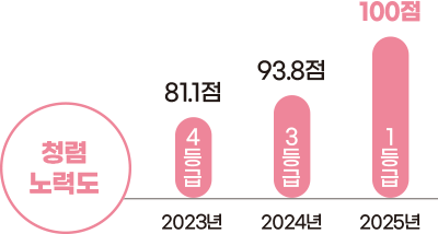 국민권익위원회가 주관한 ‘2025년 공공기관 종합청렴도 평가’는 중앙행정기관, 지방자치단체(집행부 및 의회), 교육청 등 721개 공공기관을 대상으로 ▲청렴 체감도 ▲청렴 노력도 ▲부패 실태 평가(감점)의 3개 영역 평가 결과를 반영해 종합청렴도 등급을 산출한다. 이번 평가에서 서울시의회는 부패 인식과 경험을 측정한 ‘청렴 체감도(60%)’에서 3등급(68.1점), 반부패 추진 실적과 성과를 측정한 ‘청렴 노력도(40%)’에서 1등급(100점)으로 종합청렴도 3등급을 달성했다. 이는 지난해 대비 8.5점 상승한 결과다. 서울시의회는 청렴도 평가를 받기 시작한 2013년 이래 2020년 단 한 차례 3등급을 달성한 것을 제외하고는 줄곧 4~5등급에 머물며 고전해 왔으나, 마침내 반등에 성공했다.