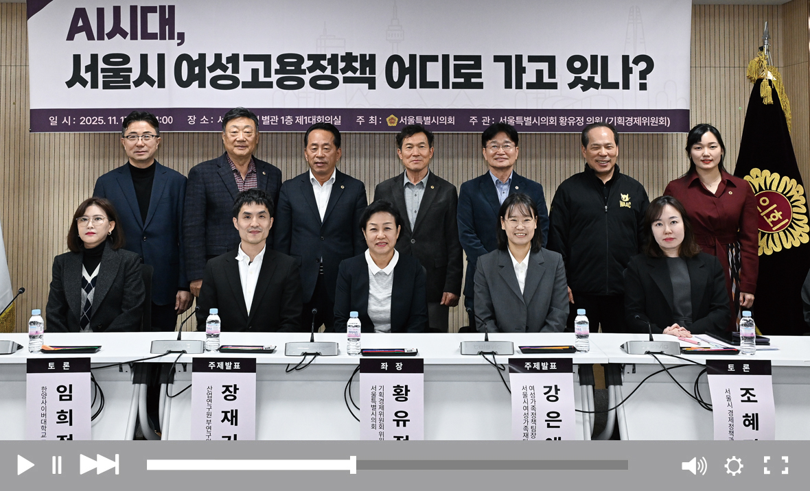 황유정 의원(비례·국민의힘)은 11월 17일 ‘AI시대, 서울시 여성고용정책 어디로 가고 있나?’ 토론회를 열고 시대적 변화에 따른 서울시의 정책적 대응을 살펴봤다. 황 의원은 “25년 후에는 한국의 청년 인구가 반으로 줄어든다고 하는데, 이를 경력 단절 여성이 대체할 것으로 전망한다” 며 “대체 인력군이 아니라 고학력을 갖춘 여성 인재는 AI 대전환의 주역이 되기에 충분하다고 말하고 싶다. 이를 위해 STEM(Science, Technology, Engineering, Mathematics) 분야 비전공자가 많은 여성을 위한 맞춤 교육이 절실하다”고 강조했다. 강은애 서울시여성가족재단 여성가족정책팀장은 주제 발표에서 “서울시는 2025년부터 본격적으로 AI 대응 정책을 구체화했다”며 “향후 여러 사업, 부서 간 흩어져 있는 AI 대응 고용 전략에 성별 균형을 위한 논의와 정책 협의가 필요하다”고 밝혔다.