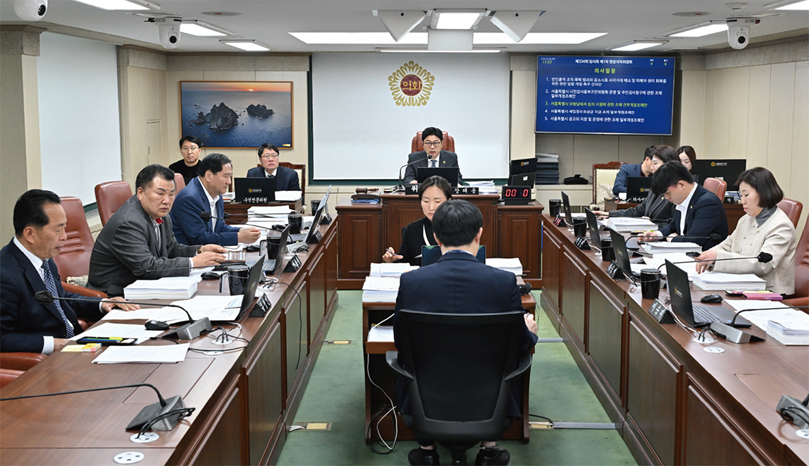 행정자치위원회(위원장 장태용)는 제334회 임시회를 열고 조례안 등 안건 심사와 주요 업무보고를 받고, 서울시정 운영 전반을 점검했다.